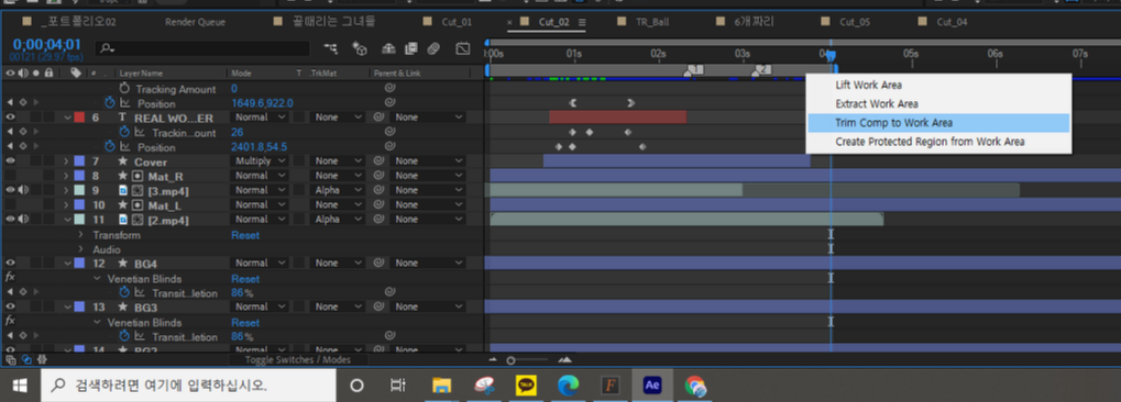 [애프터이펙트] 포트폴리오의 굴레│Trim Comp to Work Area 본문